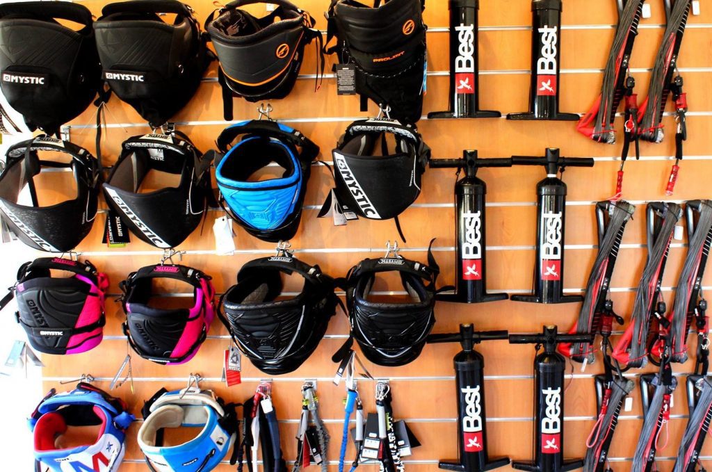 Nous louons le matériel suivant : casque, planche, barre, gilet, harnais…